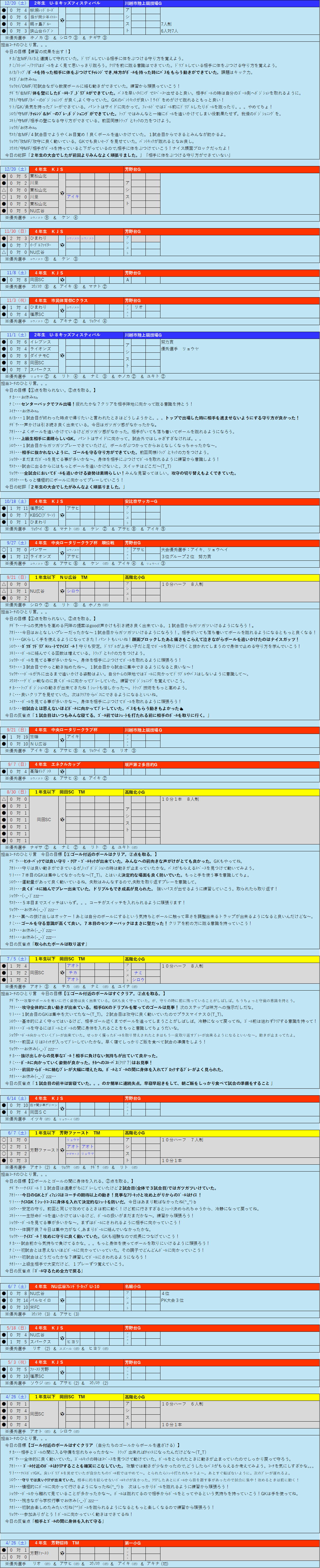 4年生以下試合結果